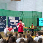 Uroczysty apel przygotowała koordynatorka SKC: Pani Maria Cieszewska wraz z Panią Justyną Rupińską – wychowawczynią klasy II, włączyli się także wolontariusze ze Szkolnego Koła Caritas.